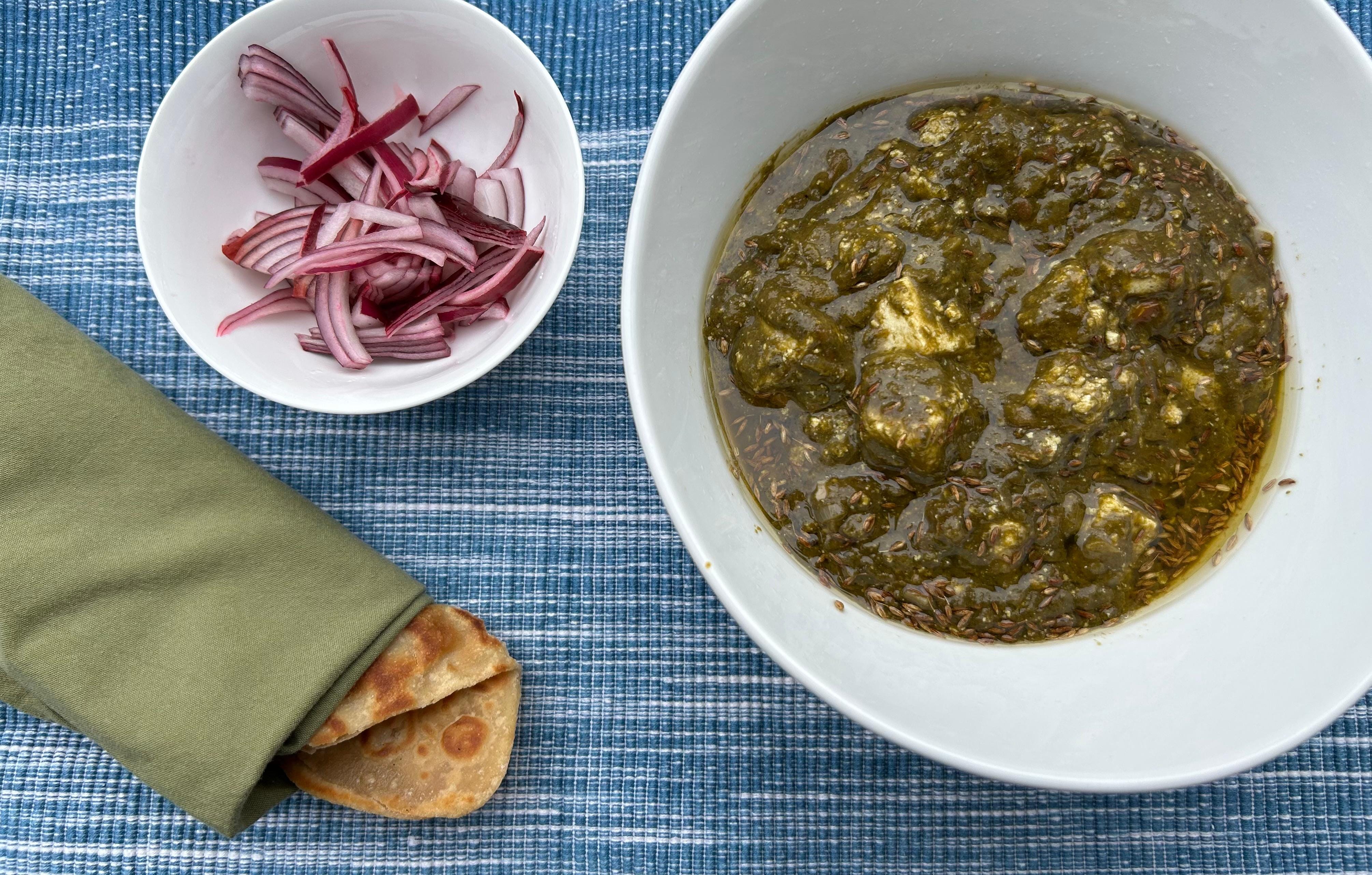 And Palak Paneer, a delicately spiced silken spinach curry with paneer